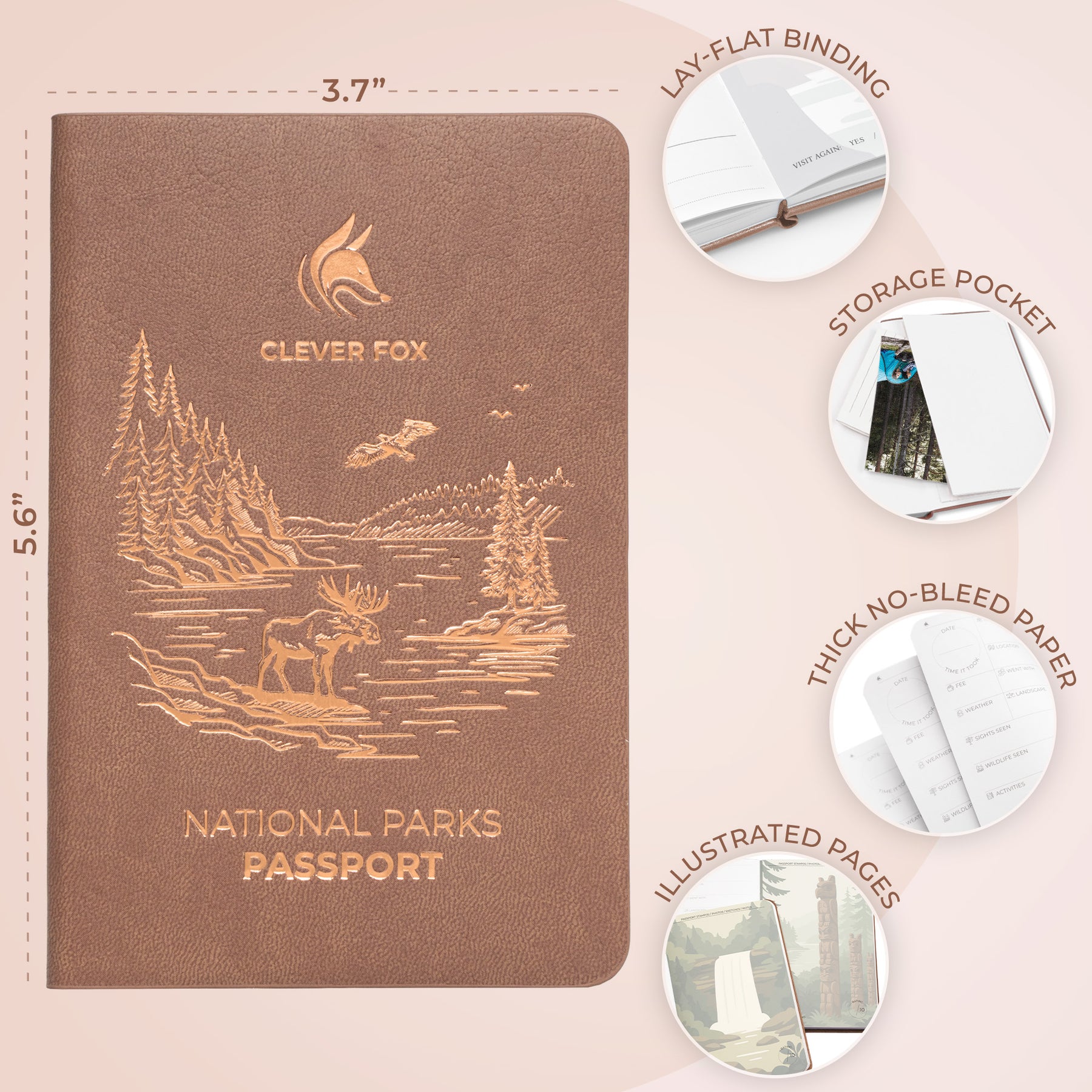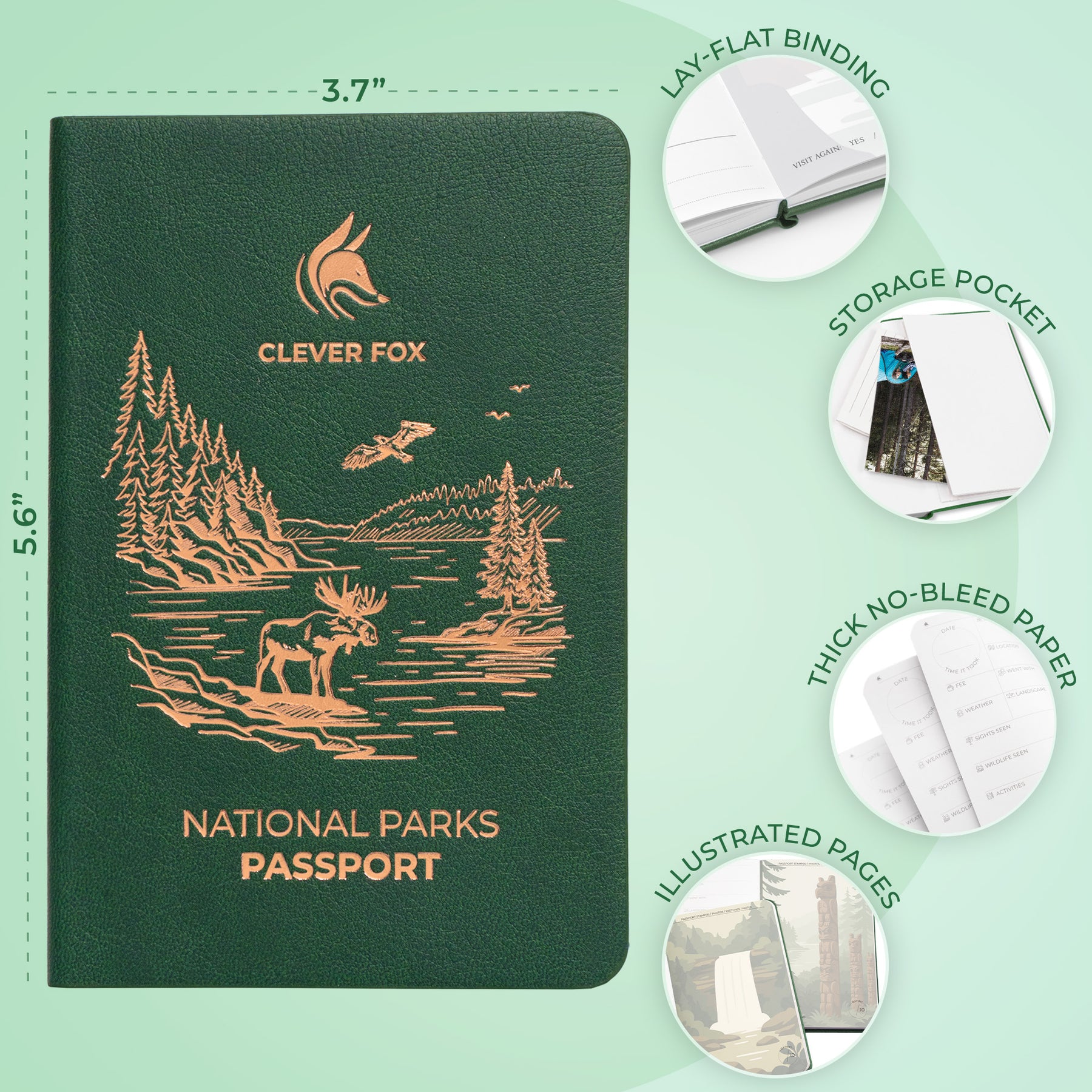 COMPACT, DURABLE, AND EASY TO TAKE ANYWHERE – Sized at 3.7 x 5.6 inches, this national park sticker book features a sturdy eco-leather cover, lay-flat binding, thick no-bleed paper, and a storage pocket.