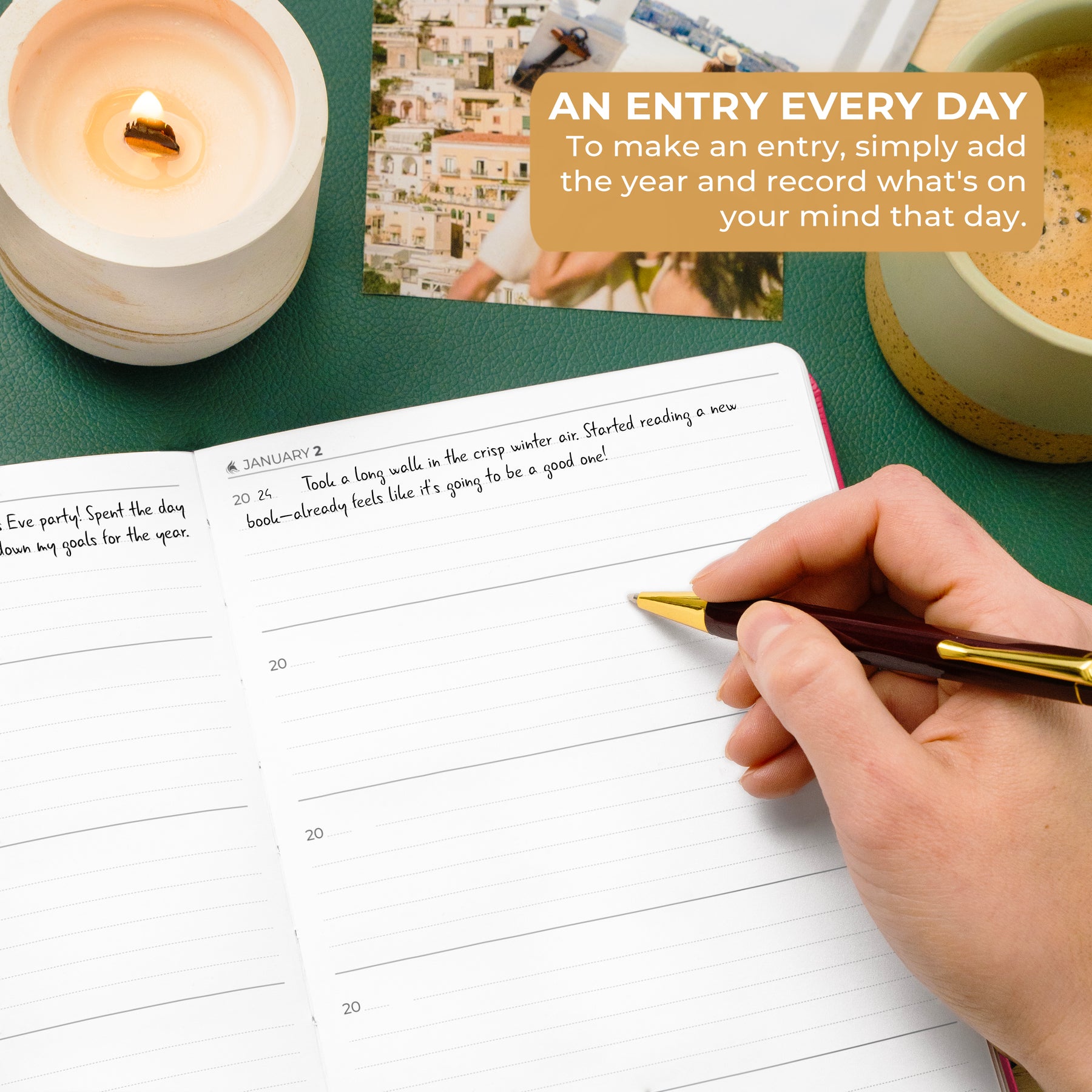 CREATE A 5-YEAR TIME CAPSULE – With space to write one line for each day over 5 years, this yearly memory book lets you look back and reflect on your growth, milestones, and cherished moments year after year.