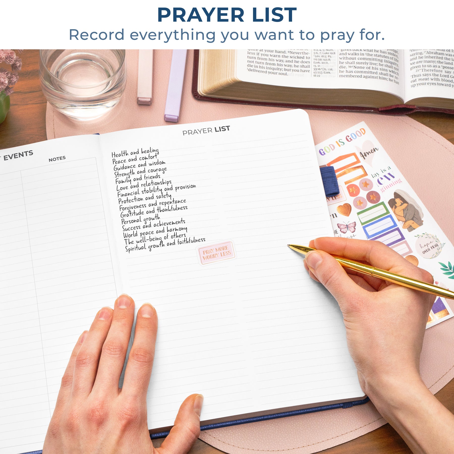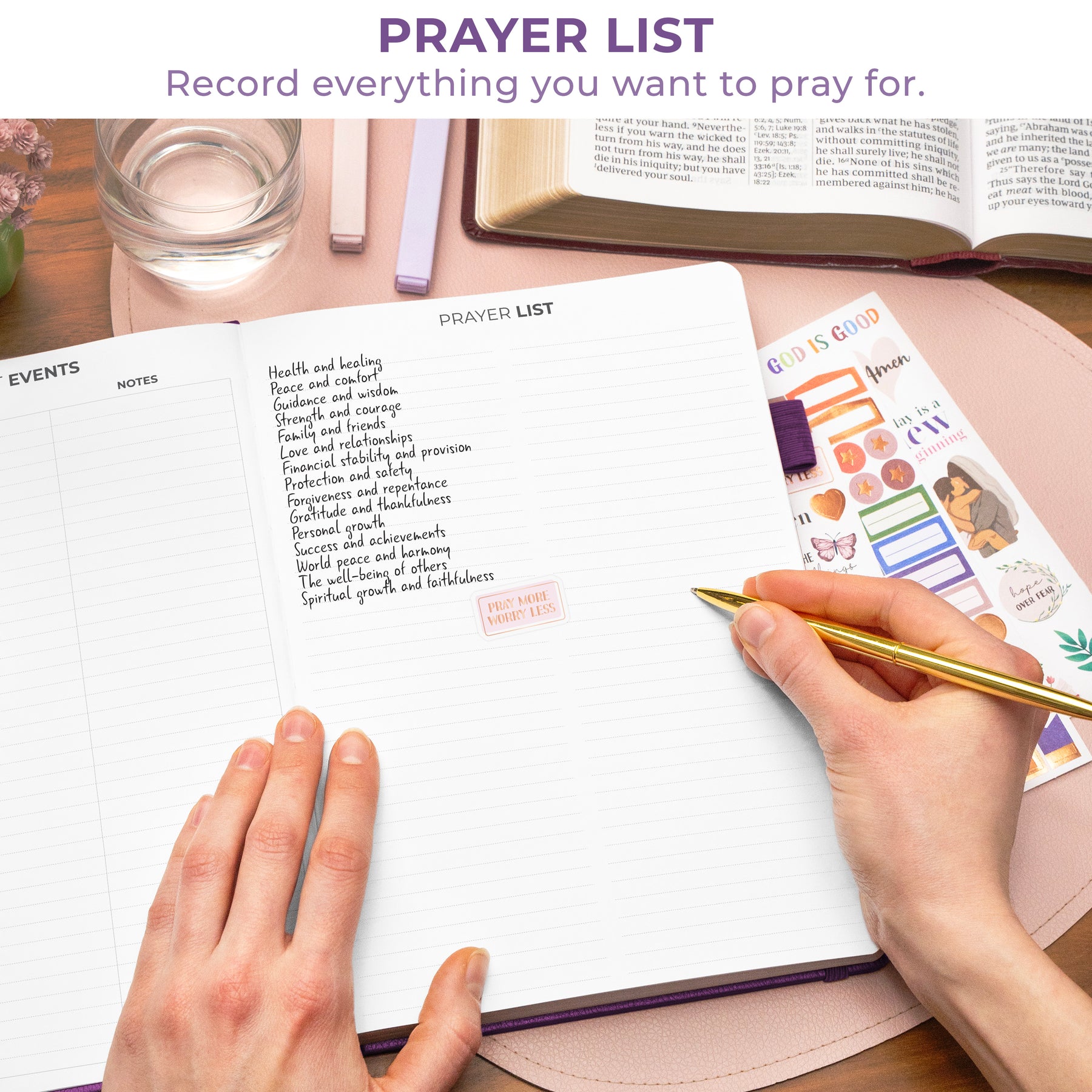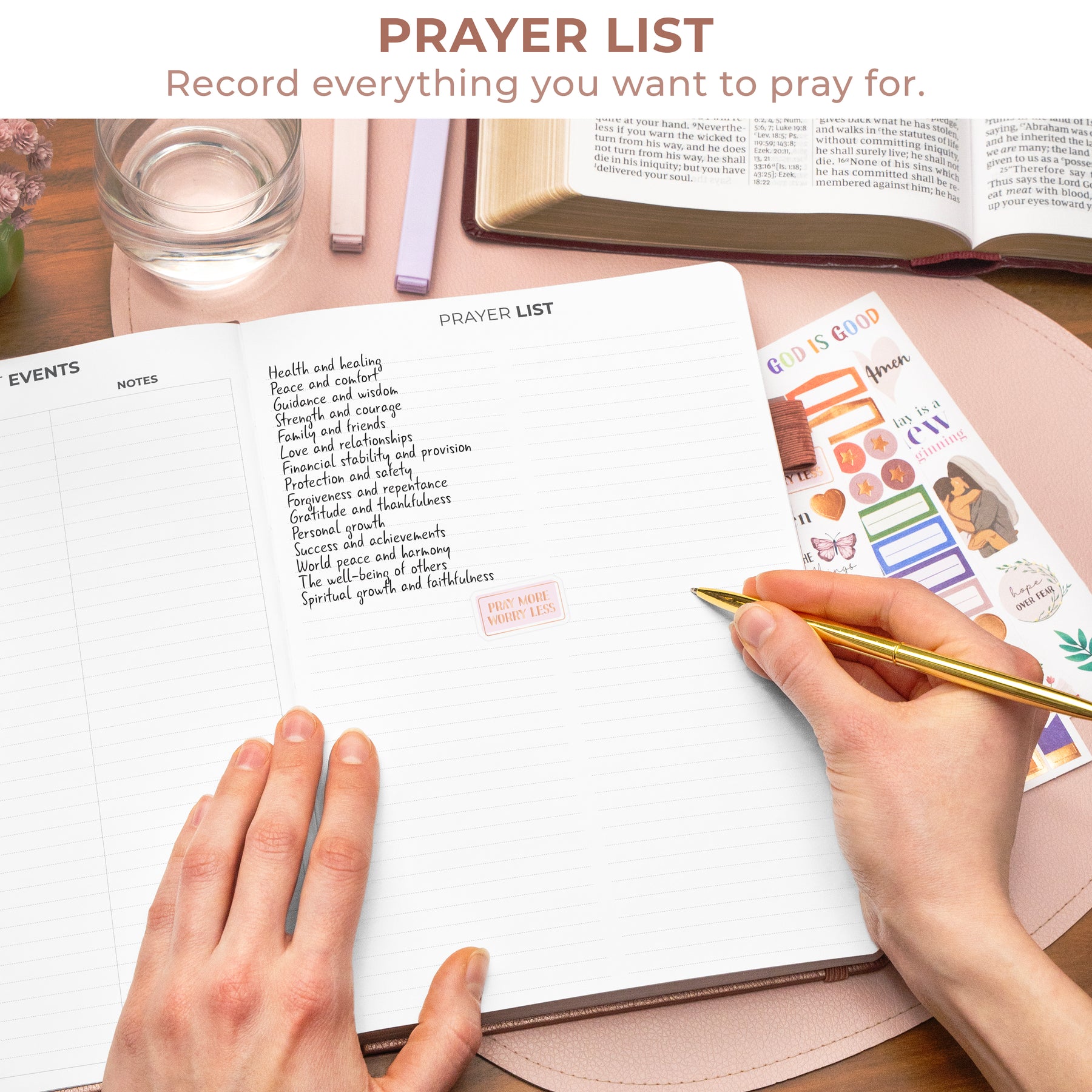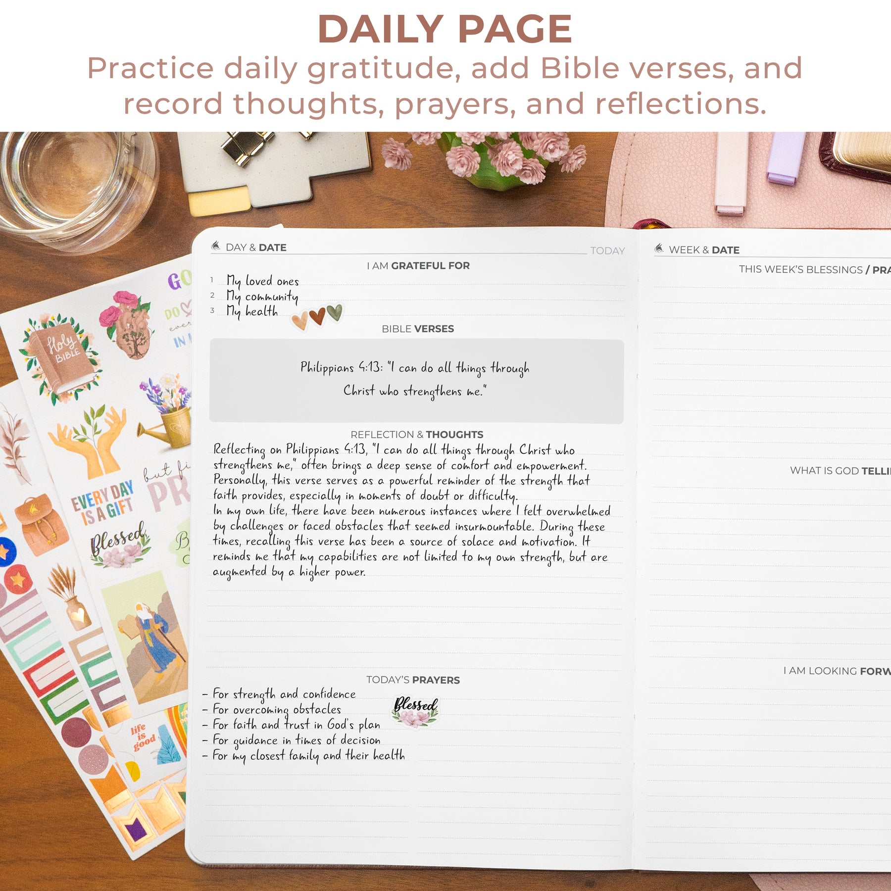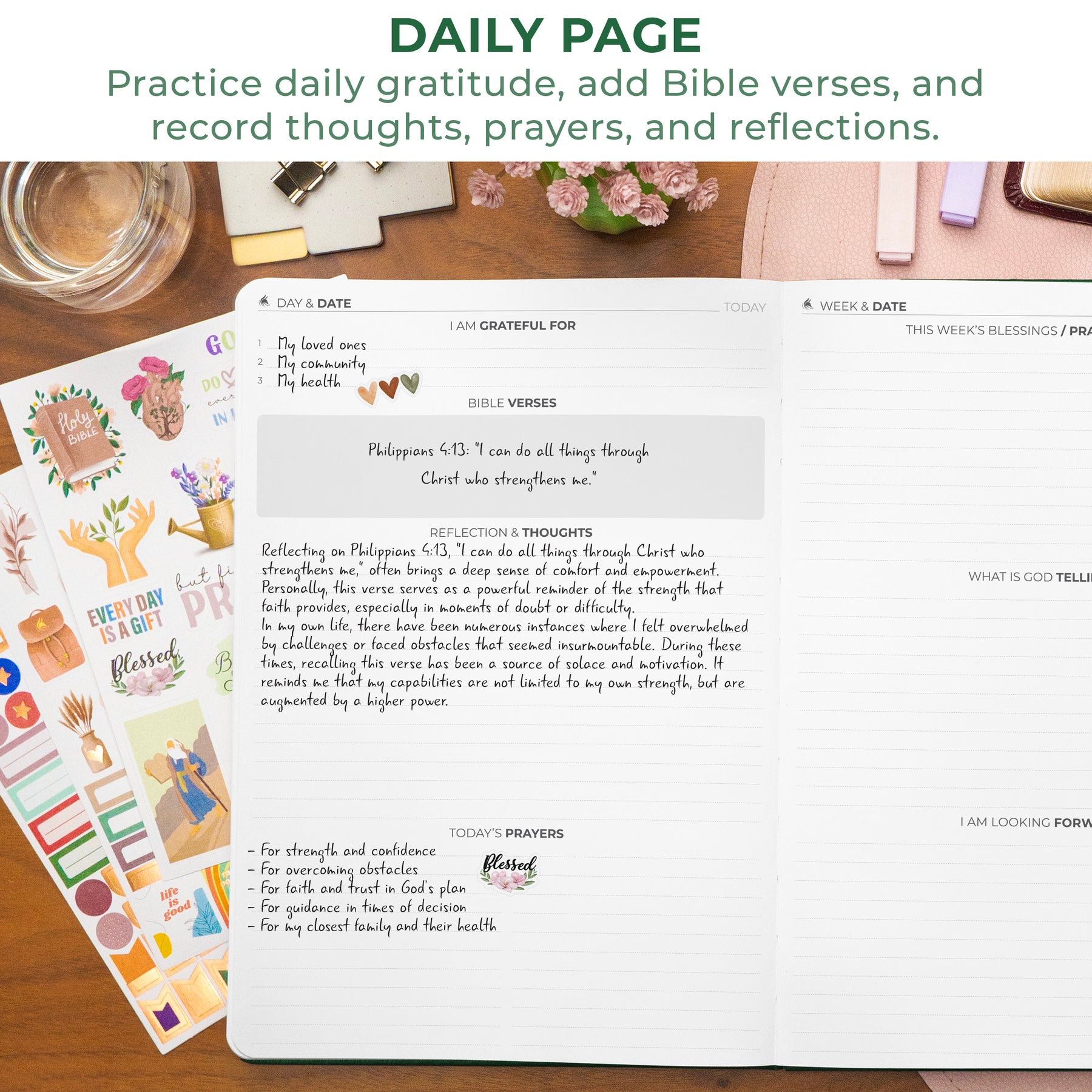 • PRACTICE DAILY GRATITUDE, PRAYER & REFLECTION – This daily prayer journal for women and men lasts for 6 months and features daily journaling pages to practice gratitude, list Bible verses, add thoughts and reflections, and record your daily prayers.