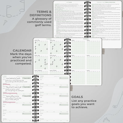 AN ALL-IN-ONE GOLF LOG BOOK – This comprehensive golf log book is the perfect tool to plan your golf practice, track your performance, and work toward consistent improvement on your personal goals.