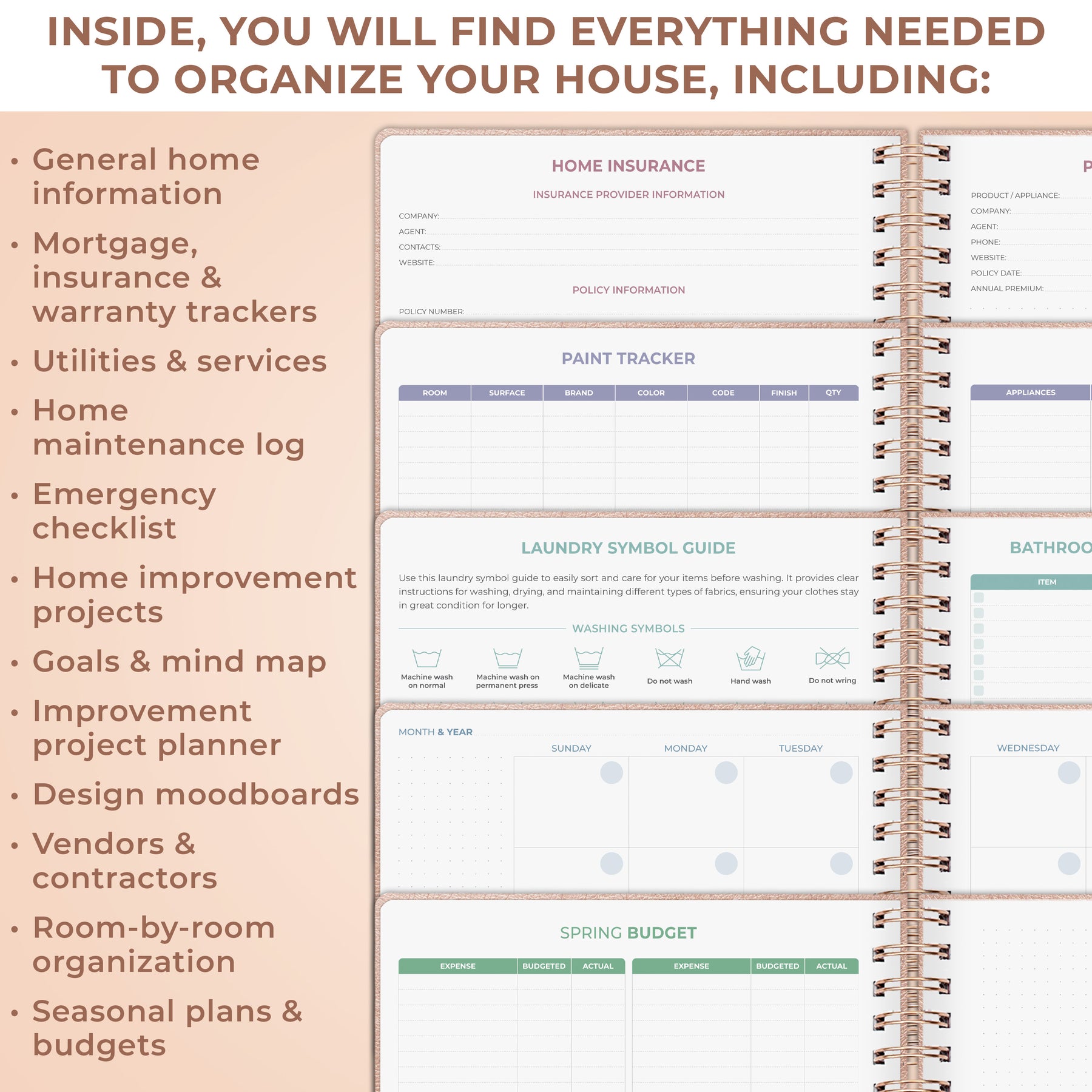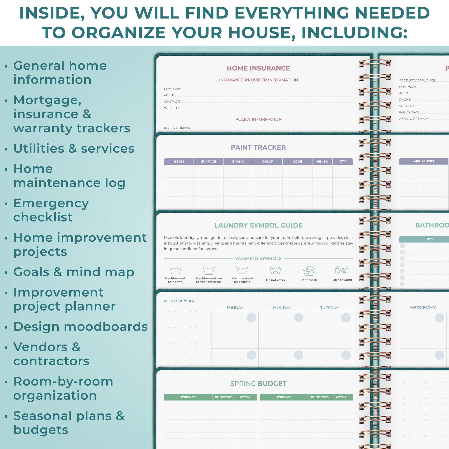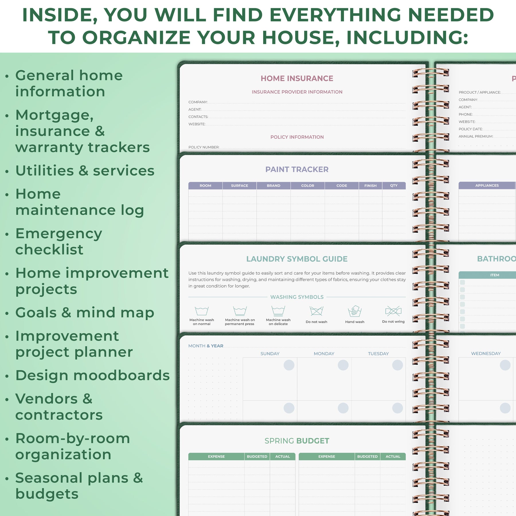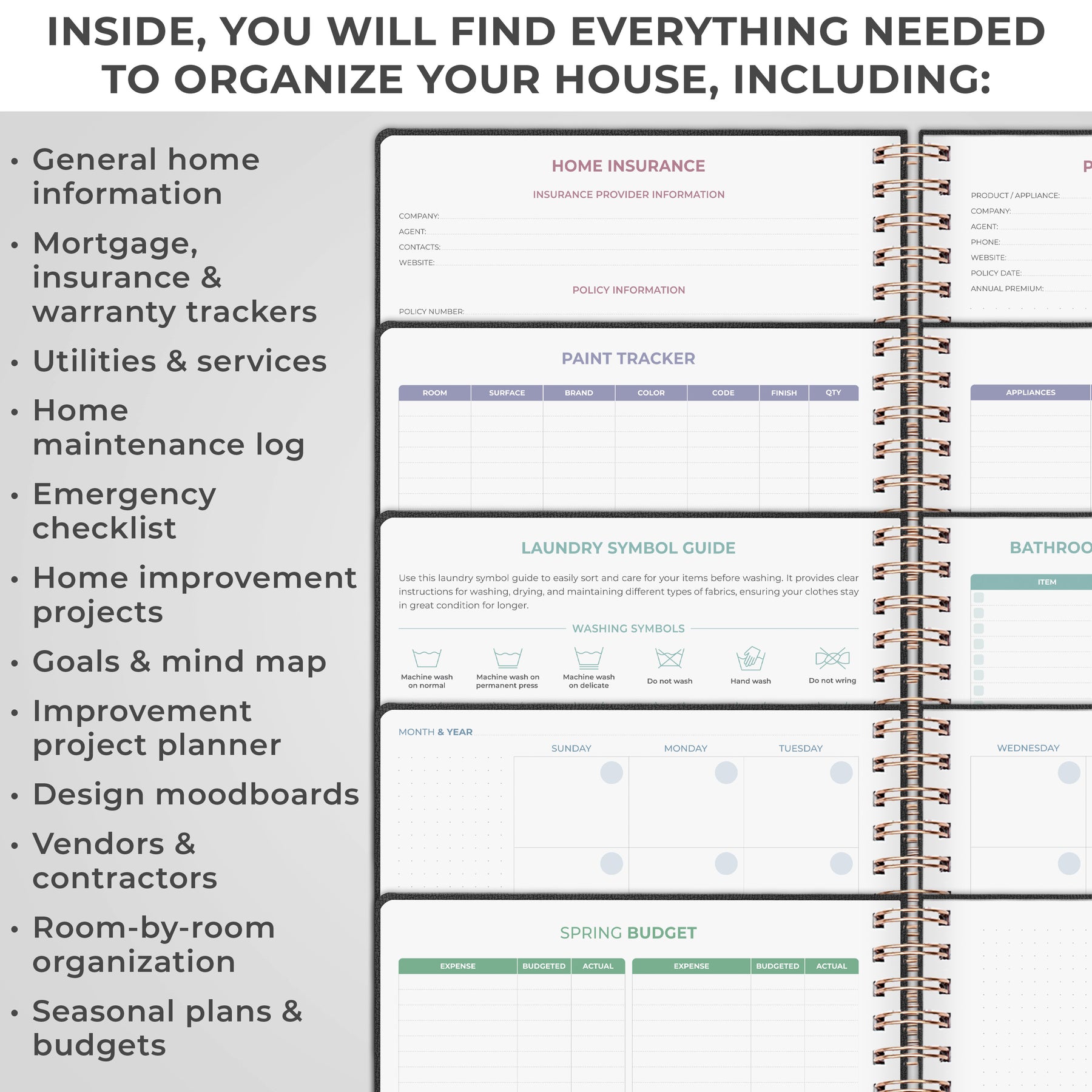 GOALS, MOODBOARDS & PLANNING – This home maintenance book has space to capture home design ideas, priorities, and long-term goals with dedicated sections for visual planning and creative inspiration.