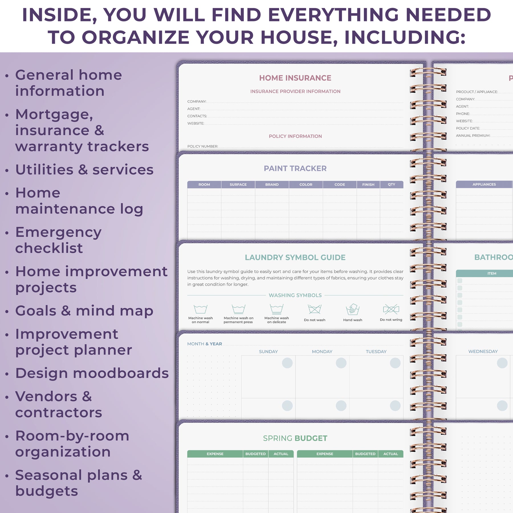 GENERAL HOME MANAGEMENT – Keep all your household information in one place, including property details, contacts, and key documents. Perfect as a home maintenance log book for new homeowners or adhd cleaning planner for adults.