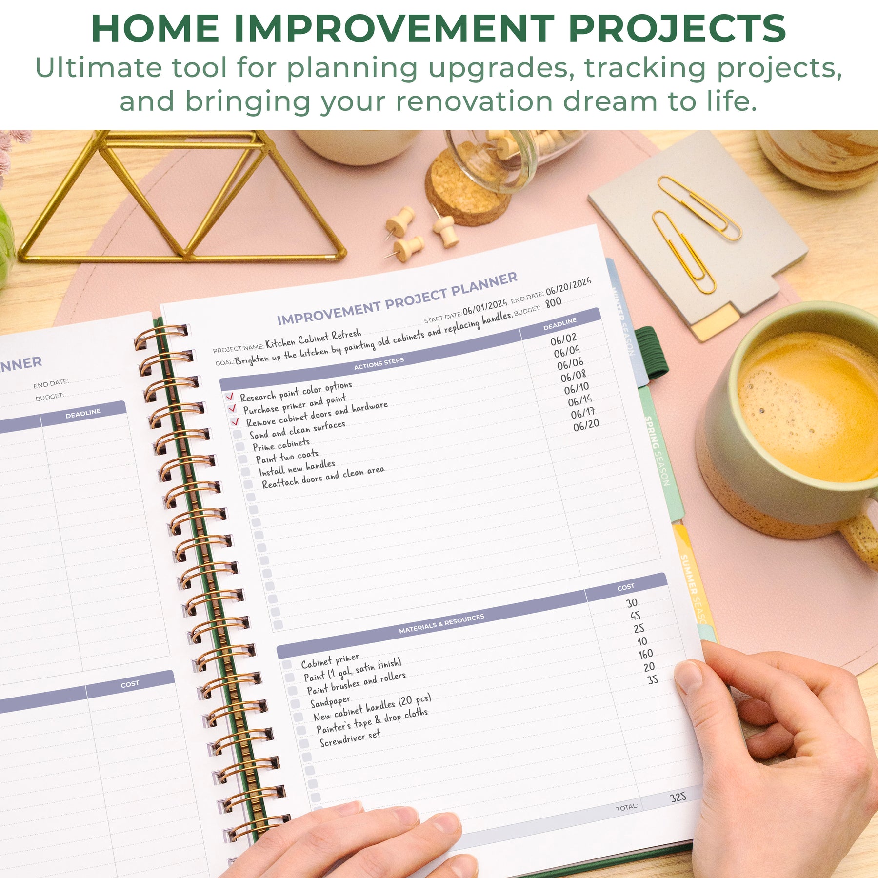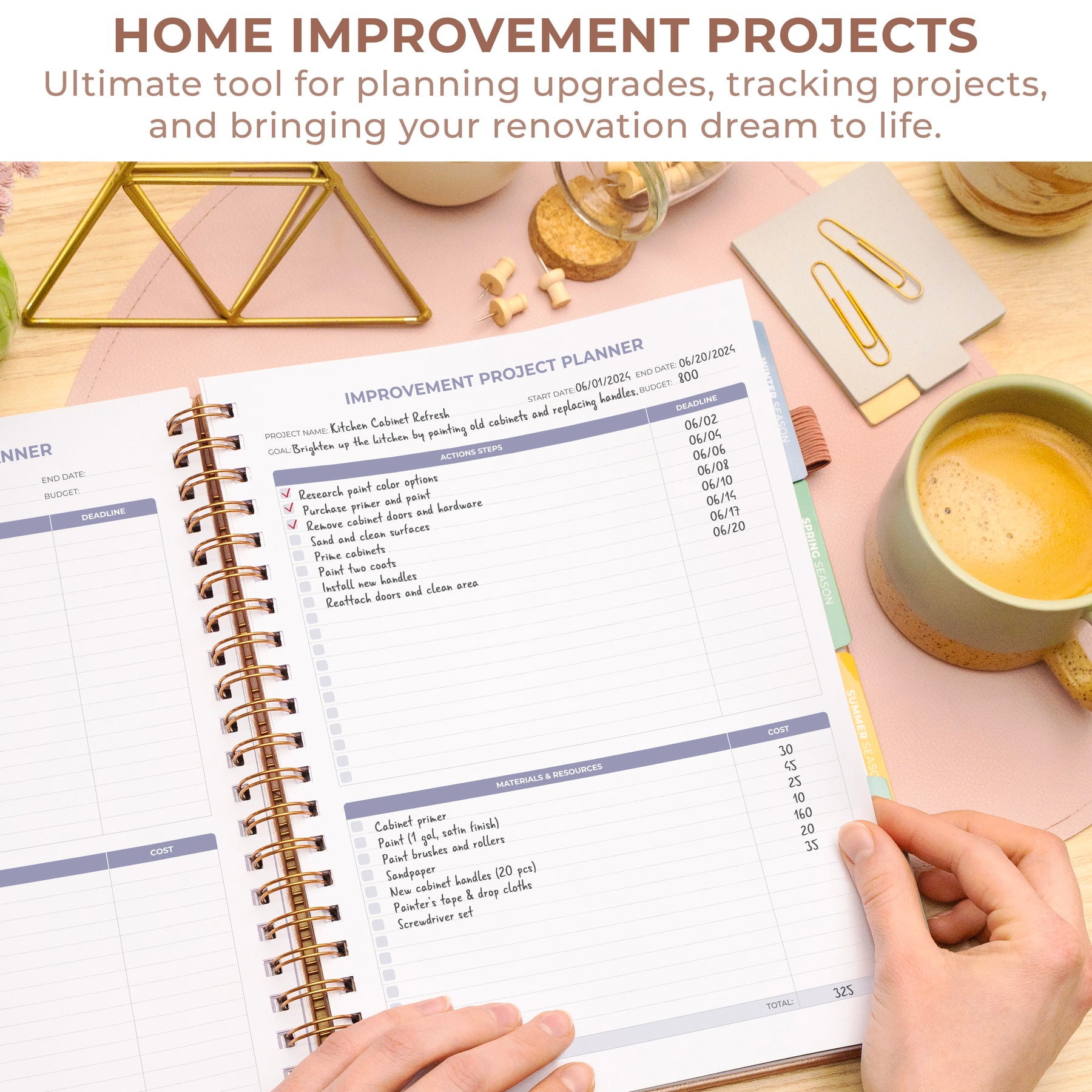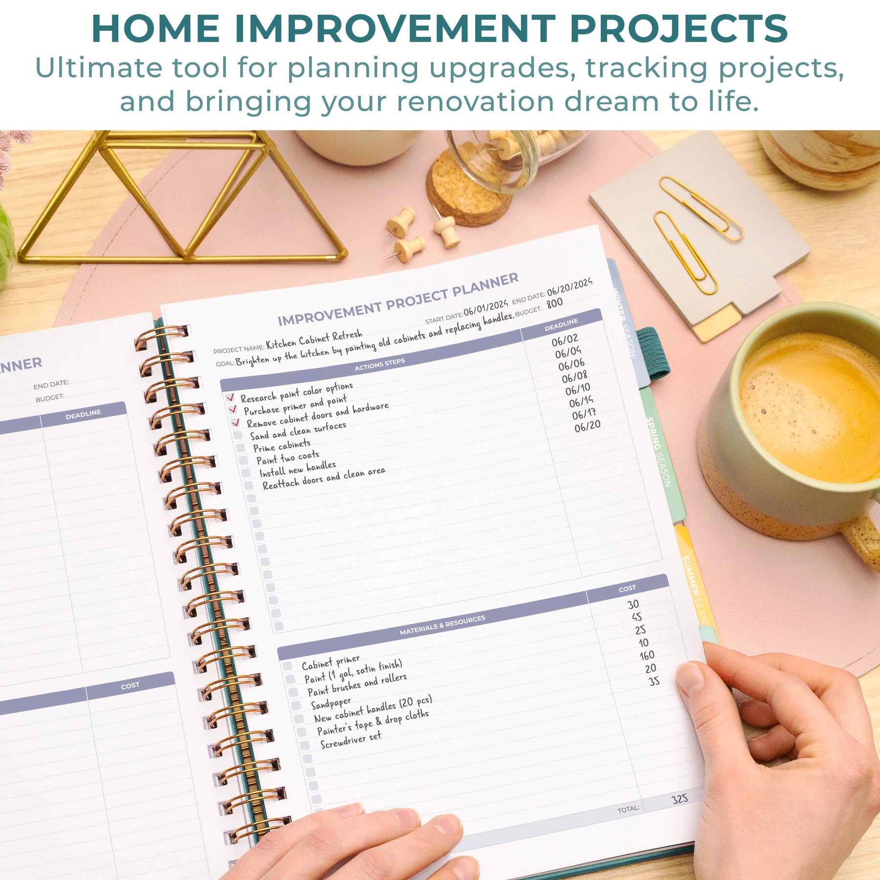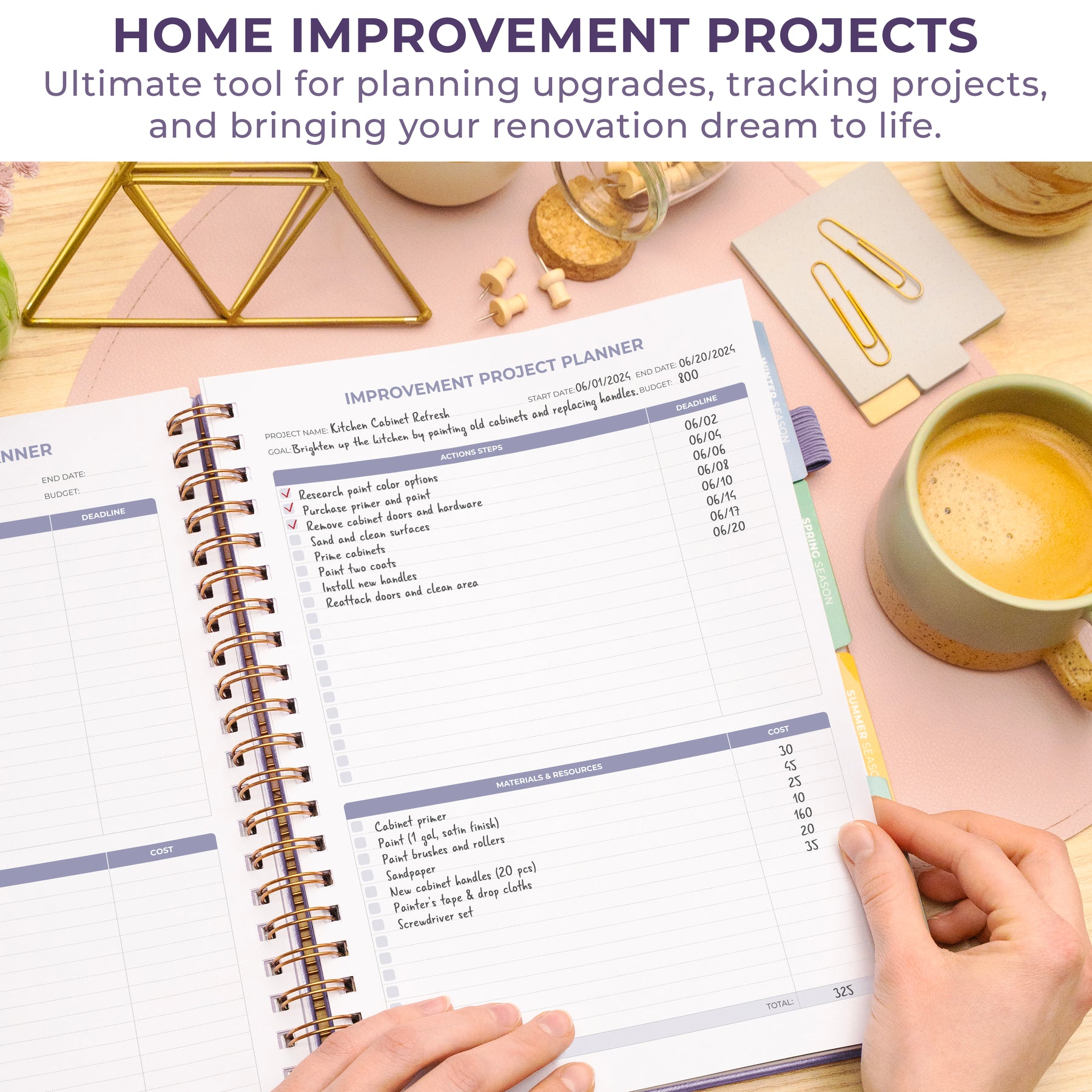 HOME IMPROVEMENT PROJECTS – Use your home planner to record project goals, action steps, deadlines, and costs to manage renovations, upgrades, and repairs efficiently.