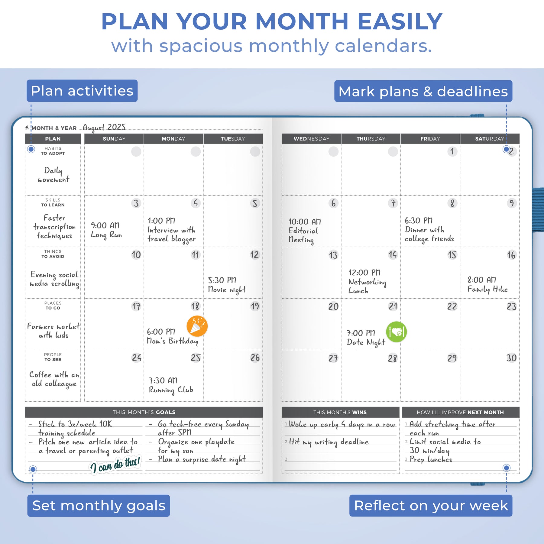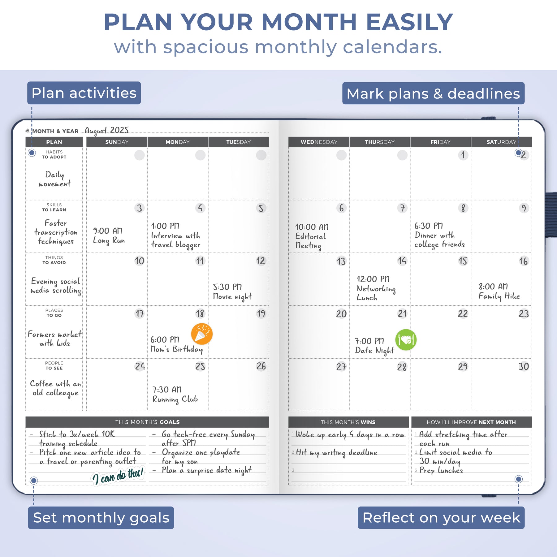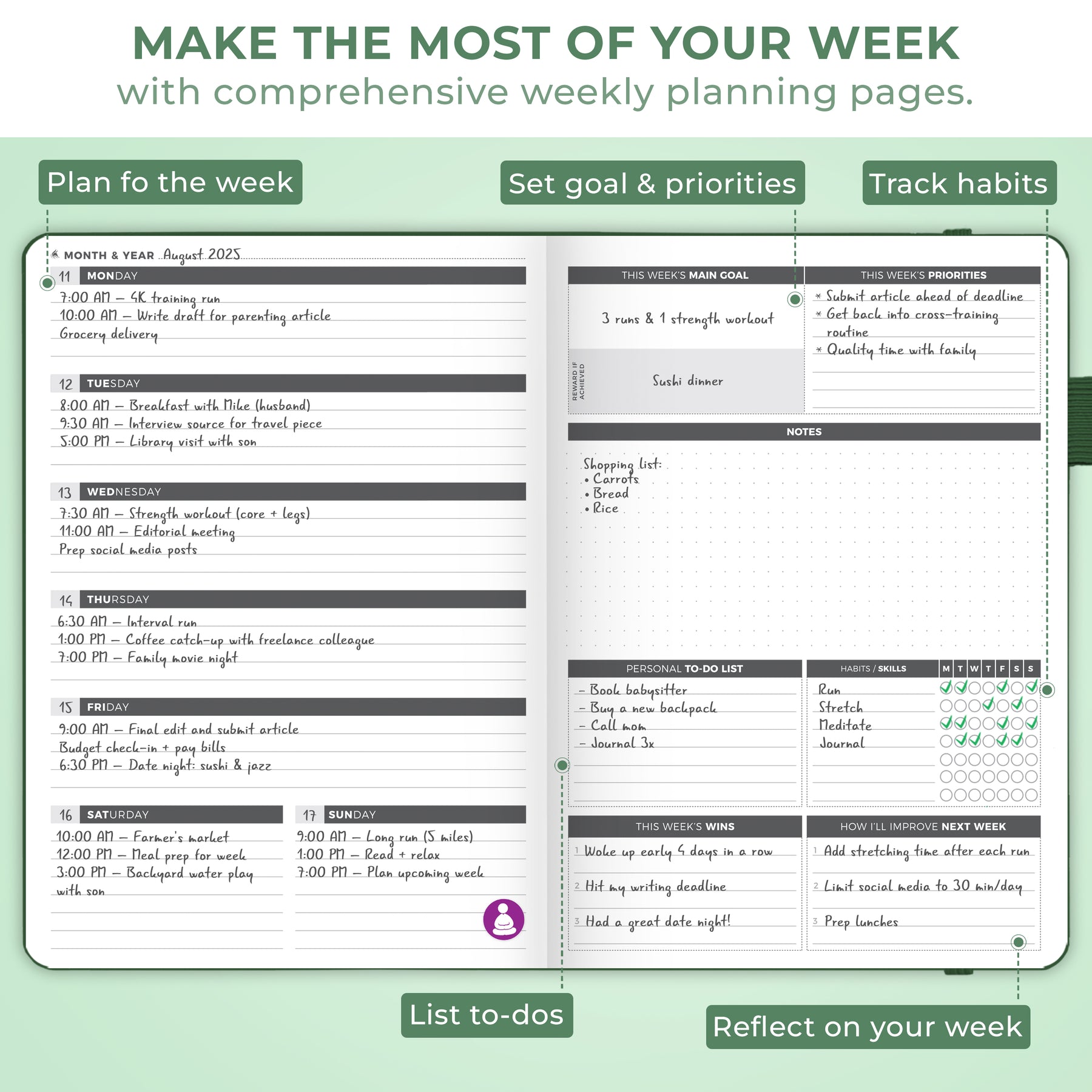 I absolutely love my planner! I love all the little sections at the beginning that basically have helped me clearly see who I am and what I hope to accomplish. I also like that the month layouts are all together for a quick overview of each month instead of skimming through page after page just to see the previous or next month. The three little page ribbons are so handy for marking the current week, note sections and any other place in the planner. How the weeks are set up is so helpful for me to write down all I have to do plus my goals, my wins, how I can approve the following week, track my habits...it all holds me accountable for getting my to do list done. so far the planner is amazing! I will definitely be ordering again.