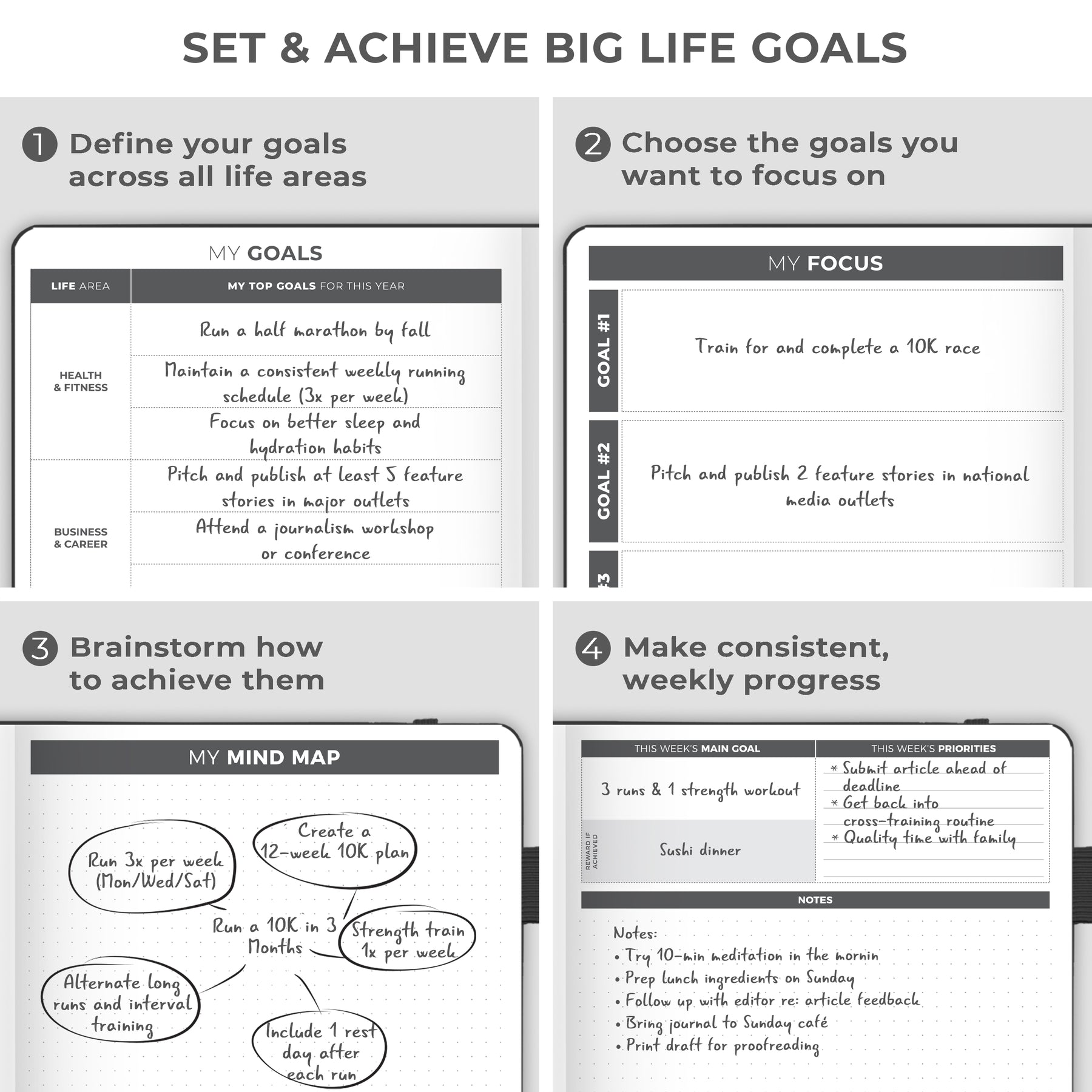 I can seriously say this planner is saving my life. For all chaotic, busy minds out there, this journal is the perfect item to have to keep track of your goals and your everyday tasks. My effectiveness at work and my personal projects has increased 200%. This is so much better than other planners because you have enough space to write down all your pending tasks and sub-tasks, and at the same time you can set monthly and weekly goals, and then break them down into smaller objectives. I also appreciate so much the fact it comes with a manual and even internet resources where you can learn how to prioritize, and how to organize your brain. I would say this is the most important attribute of this planner: more than a paper planner, it organizes your mental processes. This is a MUST HAVE!!!!!!